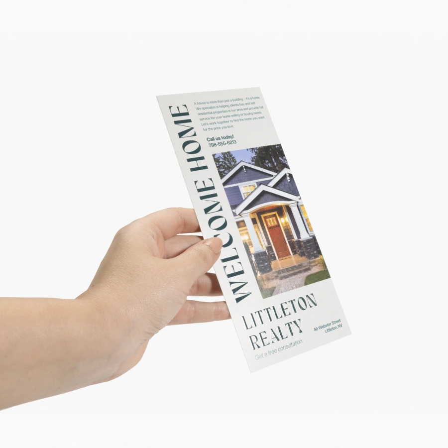 Rack cards are a classic and convenient way to promote your business or list service prices and menu items. You can easily place them in high-visibility areas, from hotel lobbies and retail shelves to reception desks and countertops. And when you highlight what your offer or what you can do, it can help increase foot traffic to your location. Their size makes them easy for people to grab and keep your contact details on hand.