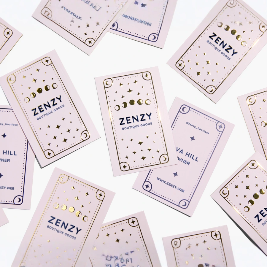 Dial up your design with raised foil business cards. The reflective gold or silver finish helps your design pop and key info stand out.